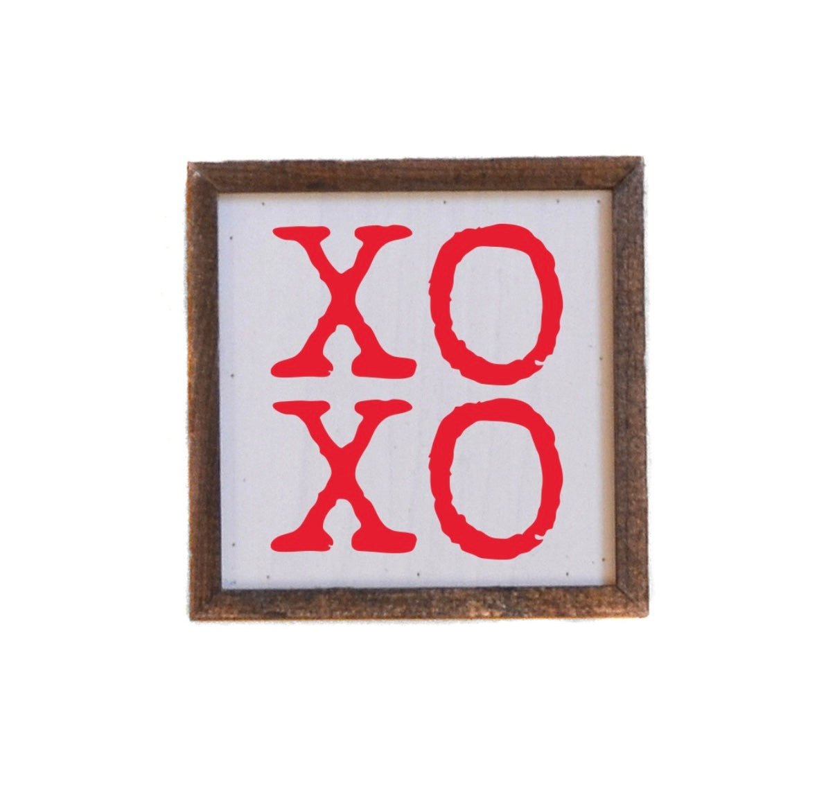 Valentines Day Box Sign Decoration. All signs are built into a wooden box frame with a rustic touch. Signs are hung directly off the frame or sit perfectly on a desk