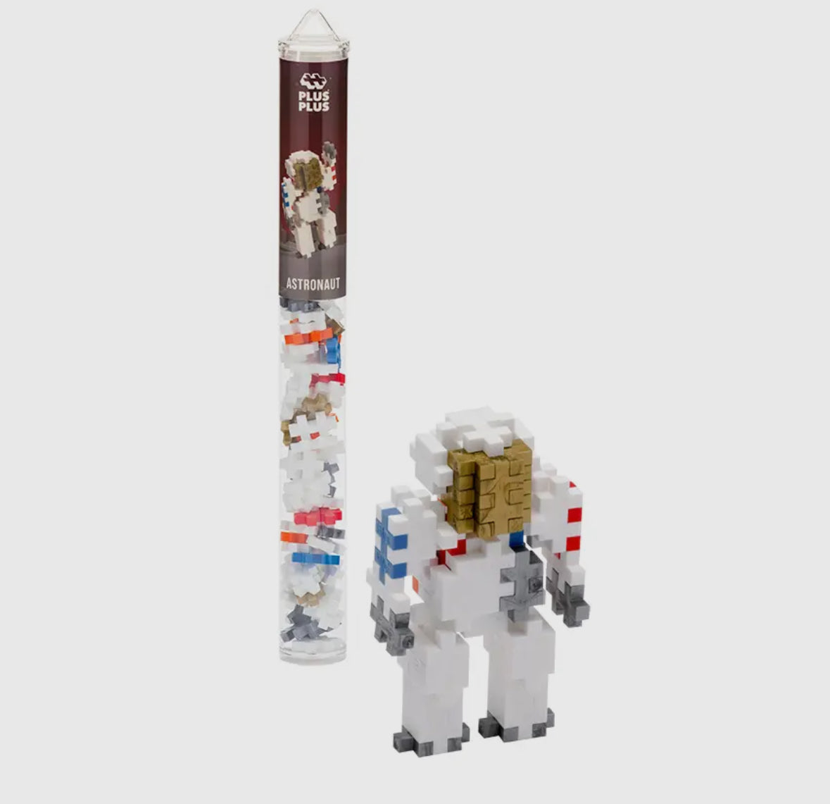 This tube contains 70+ pieces and instructions to build an Astronaut. Collect all the Plus-Plus Apollo 11 items to recreate the entire mission! Plus-Plus is a whole new class of construction toy! One simple shape contains endless possibilities and hours of fun. Each piece easily connects to the next and lets your imagination create colorful flat mosaics or work in 3-D to make more intricate builds. Even curves are possible thanks to the unique design of this deceptively simple shape! A perfect STEM toy to develop fine motor skills, focus and patience - as well as design, imagination and creativity!