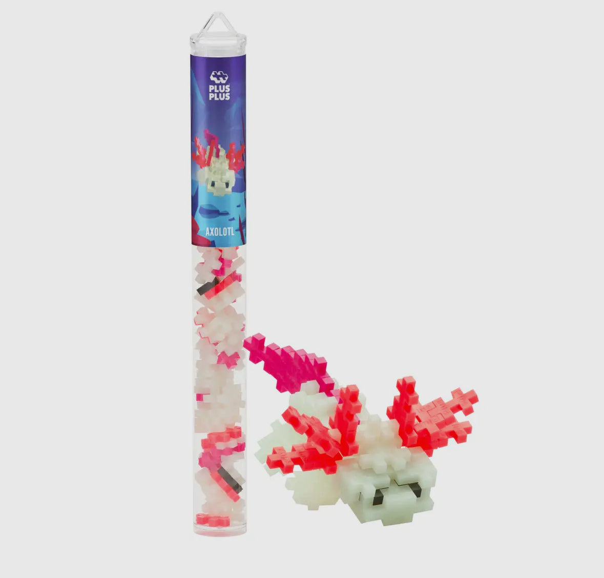 Plus-Plus is one shape with endless possibilities! These adorable amphibians only live in two lakes in Mexico, but now you can bring home an Axolotl of your own with our NEW 70 piece Axolotl tube. Follow the enclosed instructions to build your creature out of Plus-Plus, then turn the lights out to watch it glow in the dark! This one simple shape is the key to unlocking endless creativity. Discover how to create flat mosaics and 3D builds. It’s the perfect, relaxing STEM toy to encourage fine motor skills, focus, and innovation.