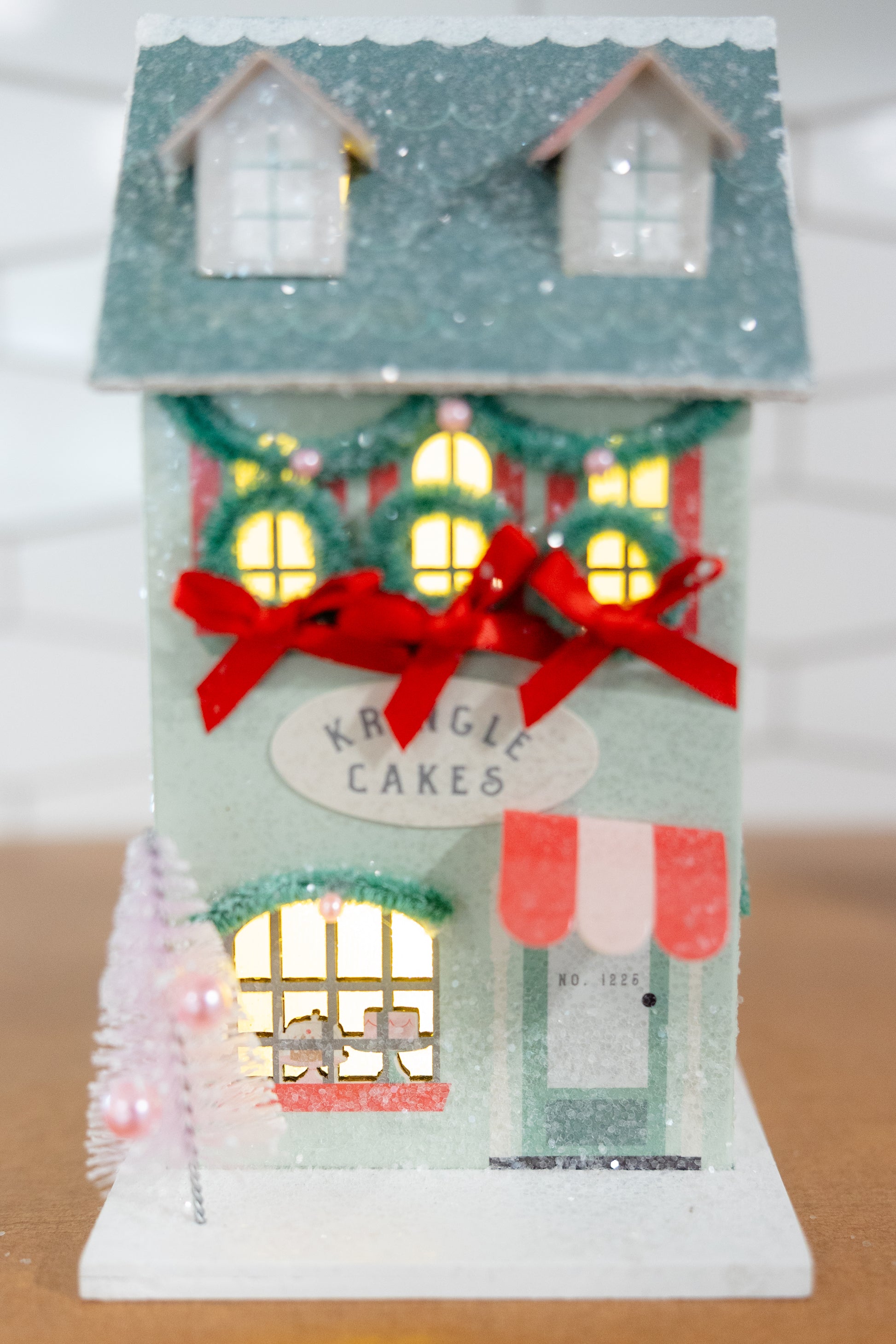 Get ready for the sweetest holiday treat with our Christmas Village Cake Shoppe. Add some festive cheer to your decor with this heavyweight paper house village. Perfect for a charming addition to your Christmas village collection. Happy Holidays!