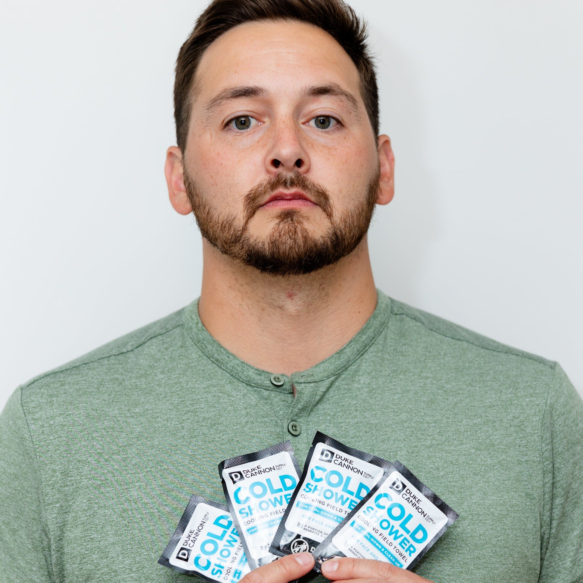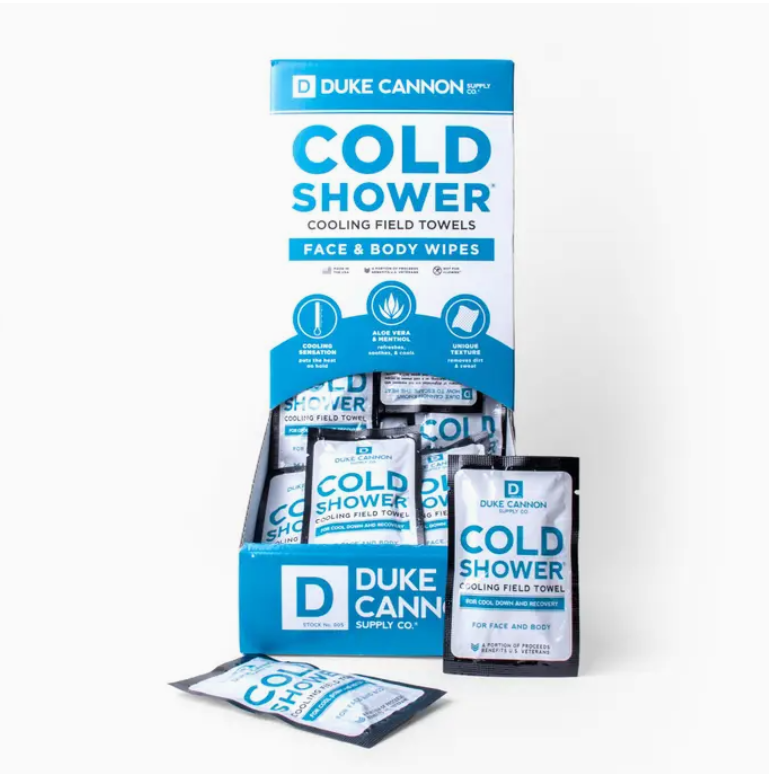 The mountains of Afghanistan are not exactly equipped with state of the art plumbing, so a cold shower to escape the dirt, grime, and oppressive heat was never an option. Such was the inspiration behind Cold Shower Cooling Field Towels.Developed in concert with a military advisory panel, these face and body towels are manufactured with menthol, aloe, and jojoba to provide a chilling blast as they cleanse and protect. The perfect way to cool down and recover after 12-hour shifts, covert field missions, or back alley boxing matches.