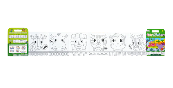Kids will happily dive right into this looong fold out coloring book! It contains five-feet of foldable coloring pages, so get your crayons and markers ready! Each double-sided, giant coloring page features a variety of themed illustrations. This impressive fold out coloring book is a great rainy day or travel activity to do with your little ones.