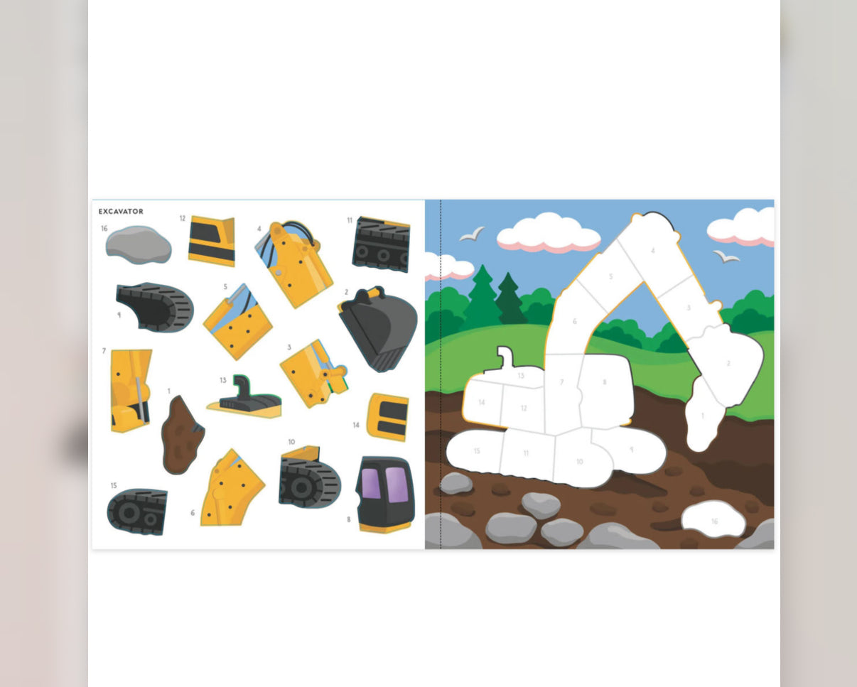 My First Color-by-Sticker Book: Cars, Trucks, & Trainsis perfect for young children who love sticker art -- and things that go! Sticker book comes with 14 magical scenes to ''color'' with the stickers provided. Extra-large stickers are perfect for little hands! Simply place each numbered sticker on the matching number of each picture. Bright, full-color stickers bring each scene to life! Sticker book pages are perforated, making it easy to remove each scene for display. Art activity also provides a fun way to learn and practice number recognition! Pages are printed only on one side.