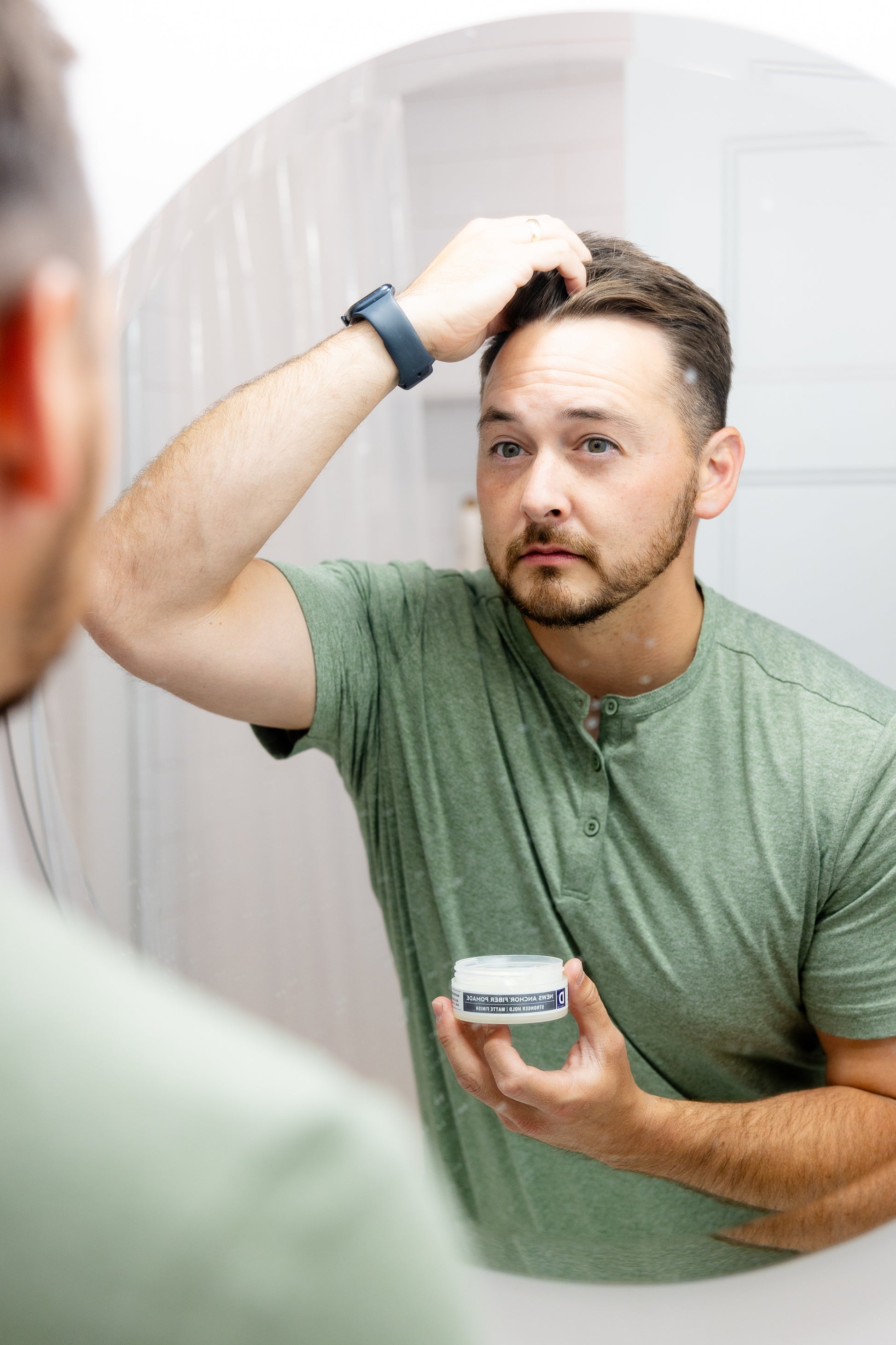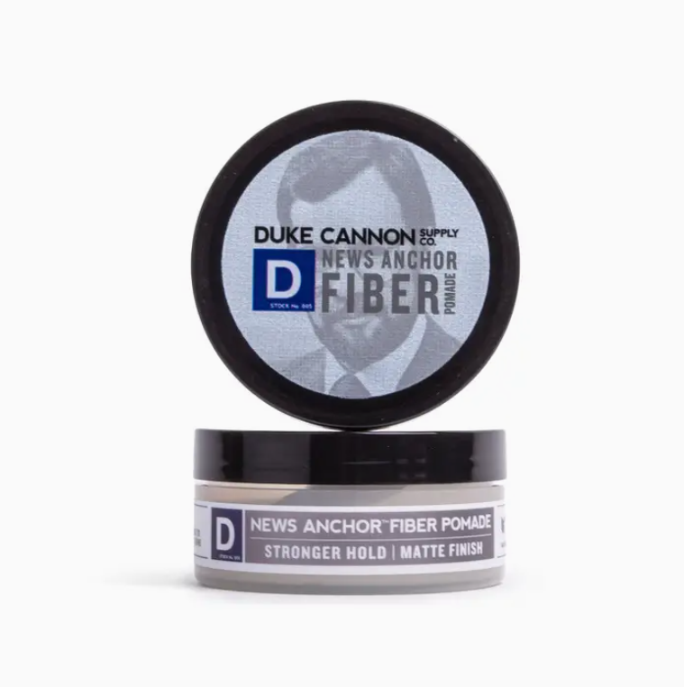 Duke Cannons Fiber Pomade helps thicken, texturize, and increase fullness to hair with a natural matte finish. Provides a medium-to-strong hold that'll keep your crown looking thicker, fuller, and camera-ready without making a big deal about it. Barbershop Pro-tip: Master barbers recommend starting at the roots and working a small amount evenly throughout damp or towel-dried hair to achieve thicker, textured, News Anchor-like hair.