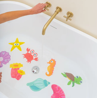 These grips are non-slip bathtub stickies designed with your little one in mind. The textured, non-slip surface is fun and functional, meaning more bath time fun and fewer slips + slides.