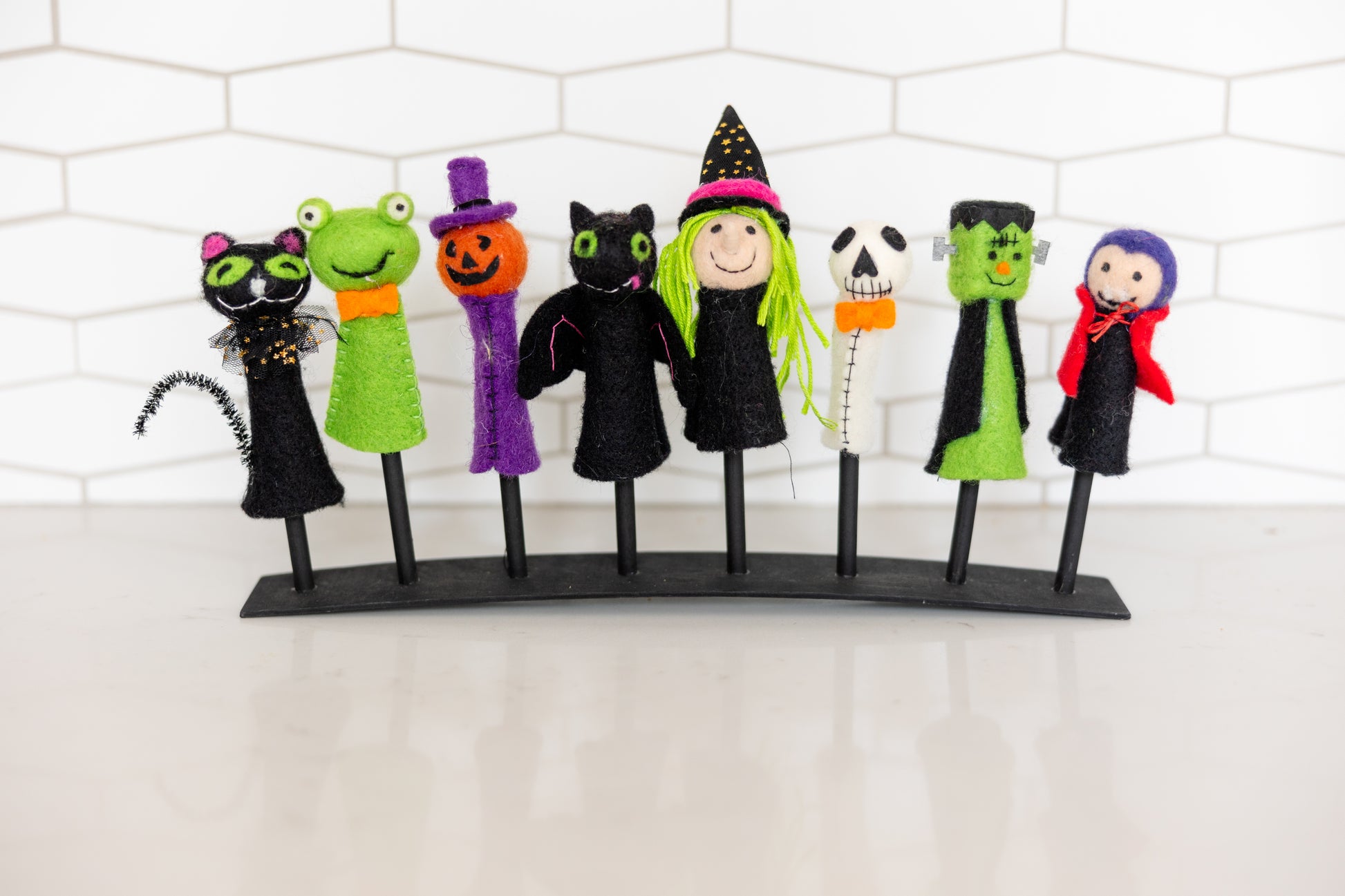 Cat, Frankenstein, Frog, Skeleton, Witch, Pumpkin, Dracula and Bat