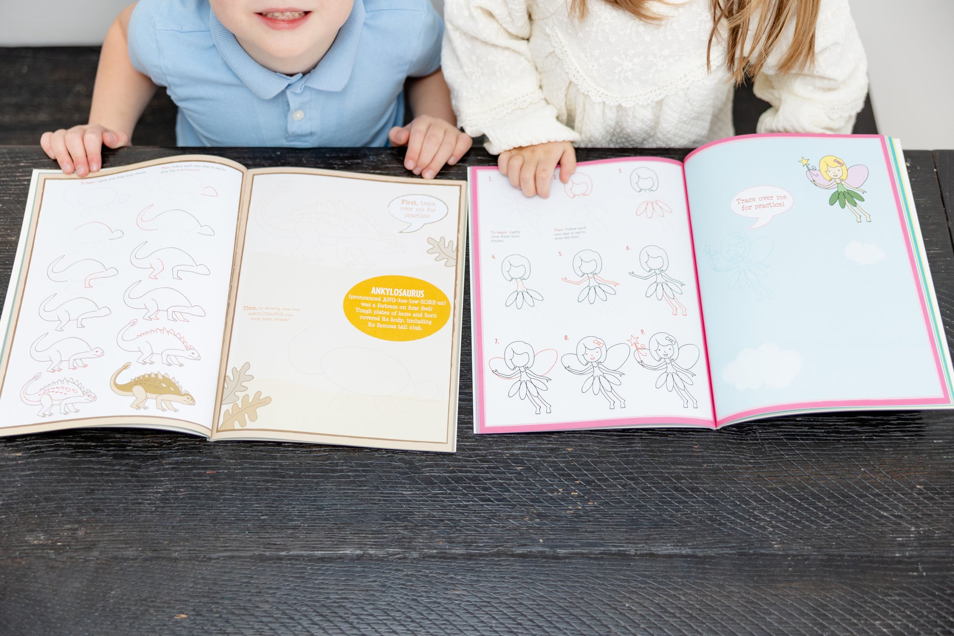 Are you ready to draw . . . all kinds of dinosaurs? This book is for you!  Young artists will learn to draw 22 awesome dragons -- Tyrannosaurus, Stegosaurus, Brachiosaurus, and more! Just follow the step-by-step illustrations.  What makes Learn to Draw  books different? The red guiding lines in each step that make completing each drawing simple, easy, satisfying, and fun!  Extra outlines of each subject are also provided for young artists to trace, for practice and for building confidence.  Kids can use their new artistic skills and imagination to draw their own pictures on the background pages provided throughout.