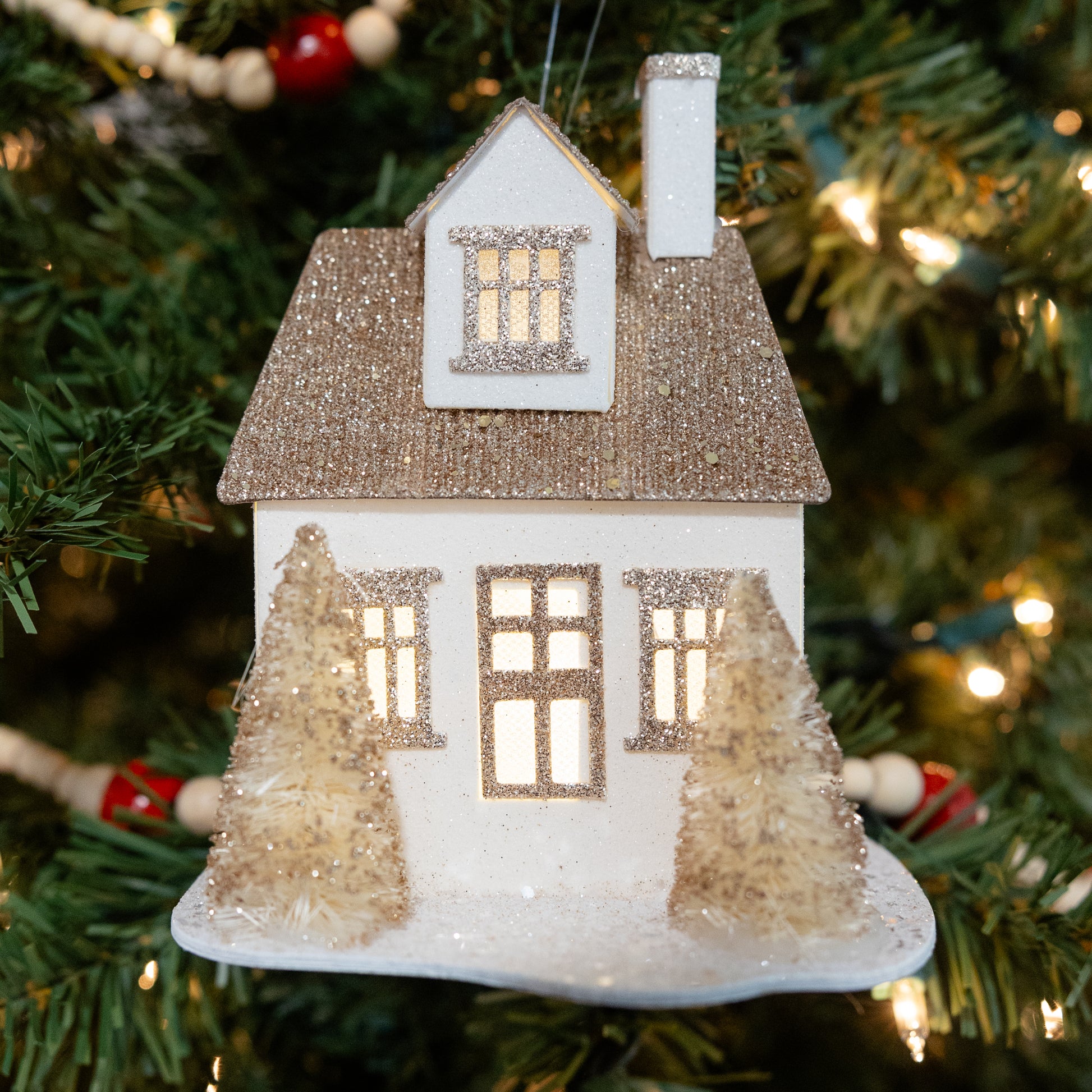These darling light up villages have a string and can be used as an ornament or they can be used as decor on a mantle!