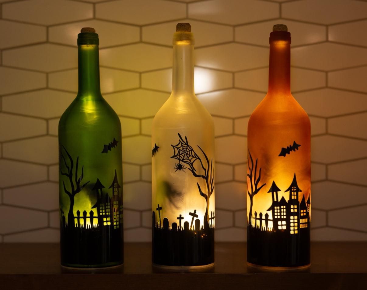 Lighted Halloween Glass Bottle
