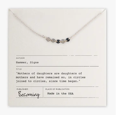 Mothers of daughters are daughters of mothers and have remained so, in circles joined to circles, since time began. -Signe Hamer