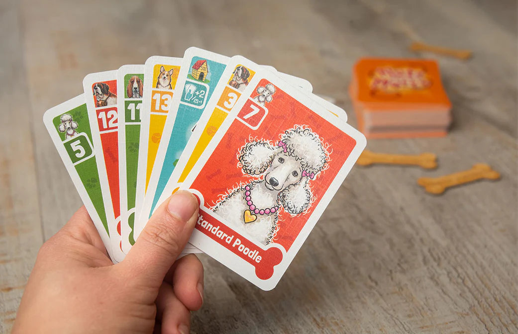 But watch out: your rival’s action cards will tangle you up and if that playful local mutt gets loose, you’ll need to grab a bone to distract him! It’s a howling good time for everyone!