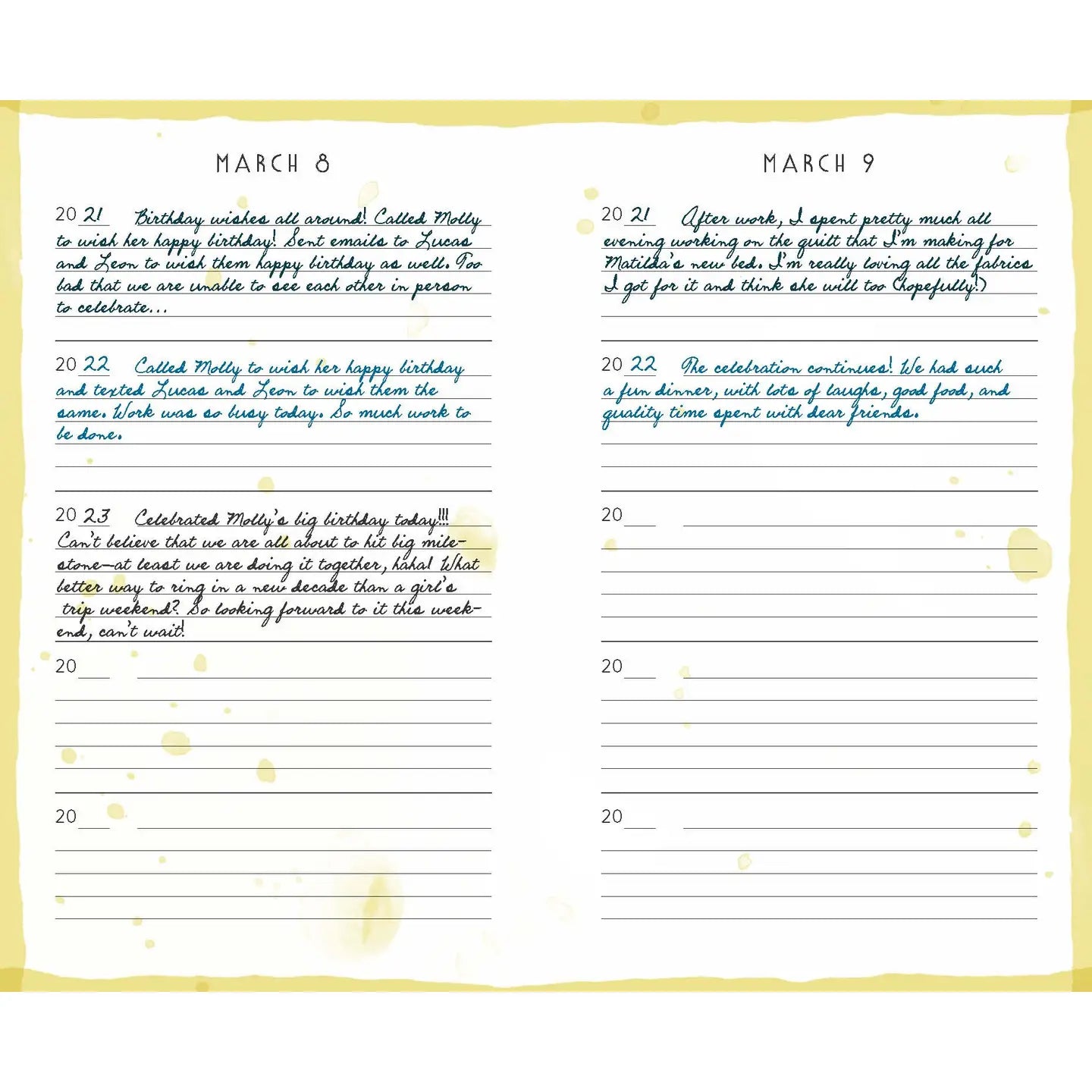 This stunning memory book is a simple and rewarding way to reflect and record. The pages offer space to write a brief line each day, while allowing you to compare today's events with your notes from the same date in years past.