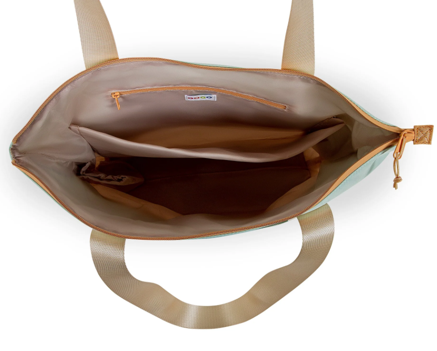 This tote pretty much does carry all! With padded pockets inside for all your devices and a luggage sleeve, this is a bag to travel with. It is also made from 100% recycled plastic bottles and is water repellent.