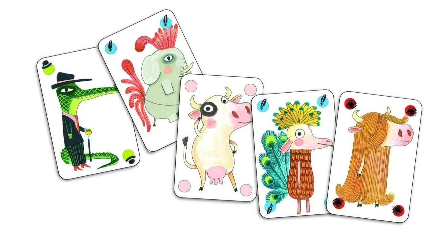 Pipolo is a beautifully illustrated bluffing game. The cards are illustrated with a great sense of humor - animals are either hairy, naked, feathered or dressed. In order to win you have to know how to bluff with confidence. The first player puts down a card face down and announces for example, that it is naked. The other players have to follow suite and place a naked card down. However, they all have a right to lie! The first person to finish with no cards is the winner.