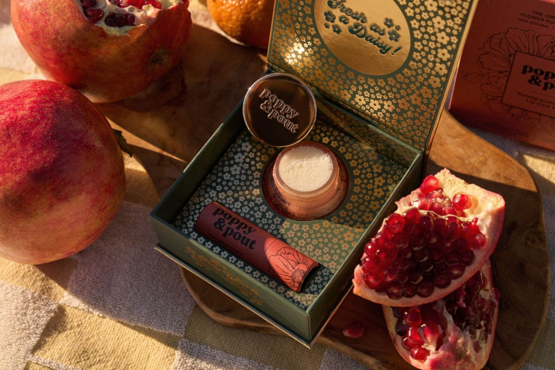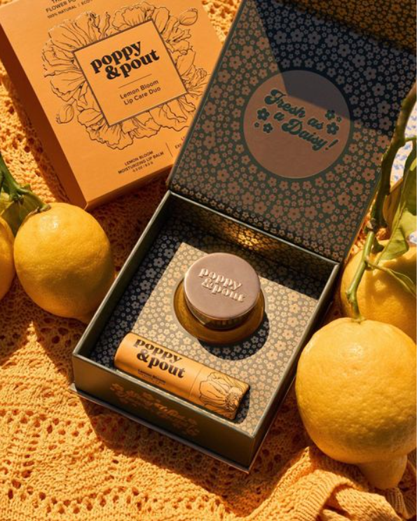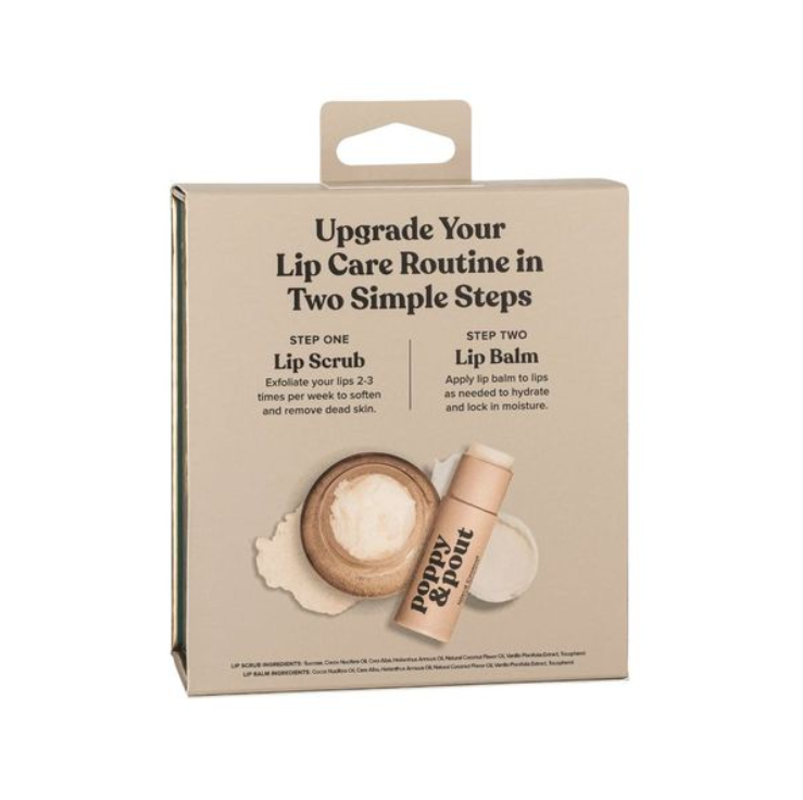 Each set comes with one lip scrub and one chapstick in a green and gold box.