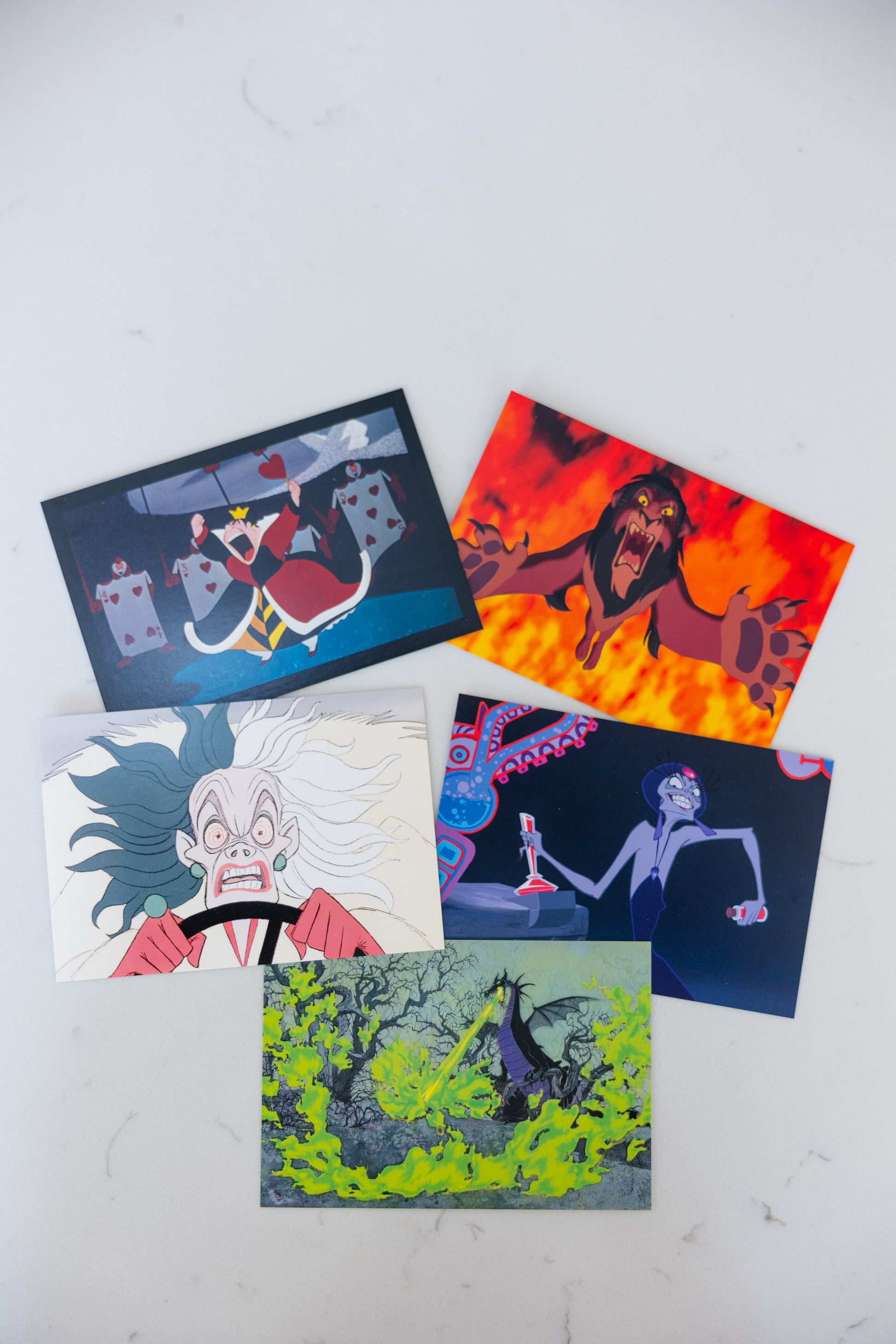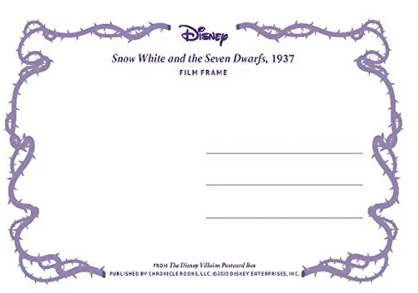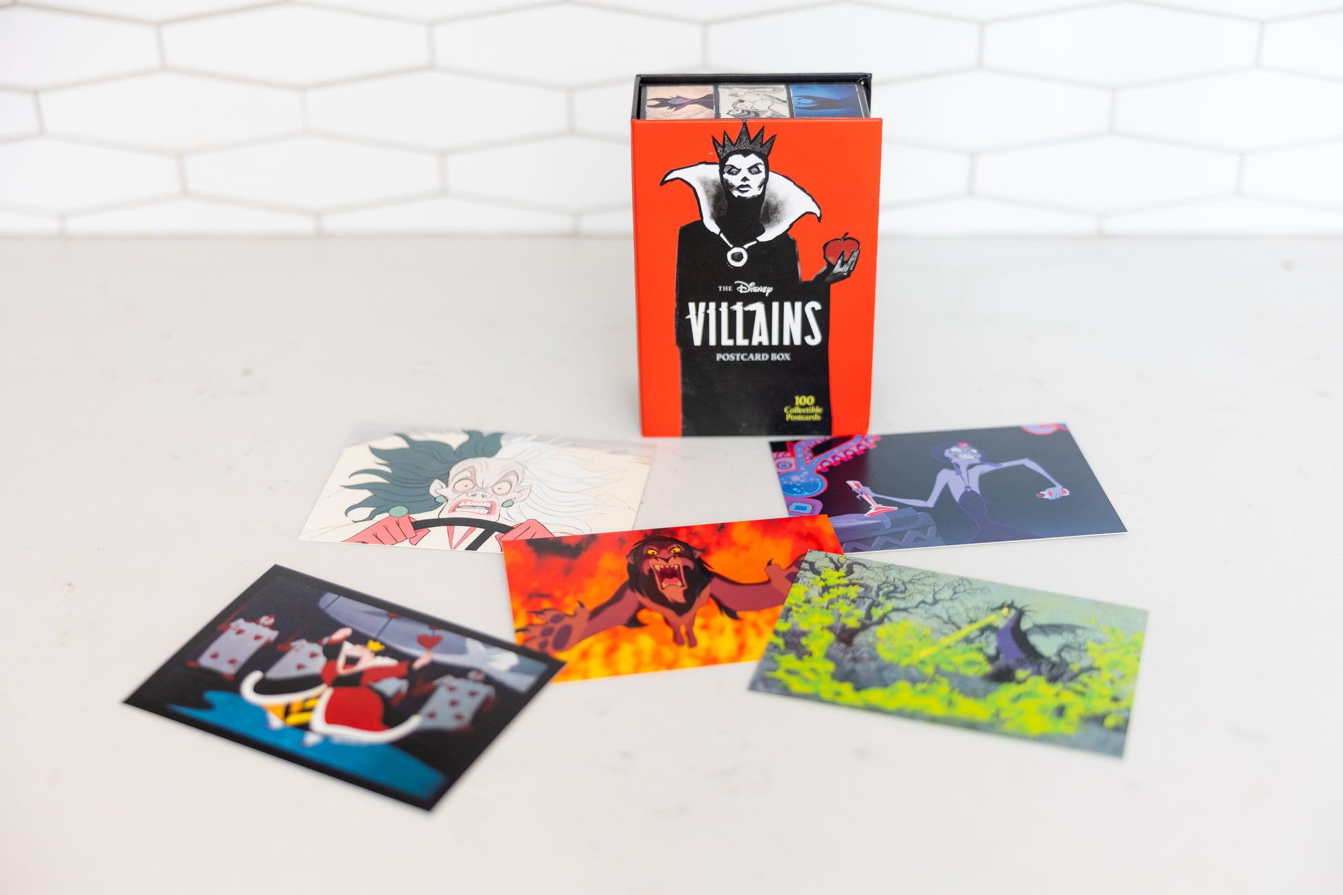 Let your darker side come out to play with this wickedly fun box of Disney Villains postcards! These 100 collectible cards showcase the most enchantingly evil foes and sidekicks in the Disney realm, celebrating the art that defines the quintessential Disney villain. Featuring a mix of colorful production art and fans' favorite final frames, this charming collector's item is sure to delight Disney fans who cheer for Maleficent and think Ursula is just a little misunderstood.