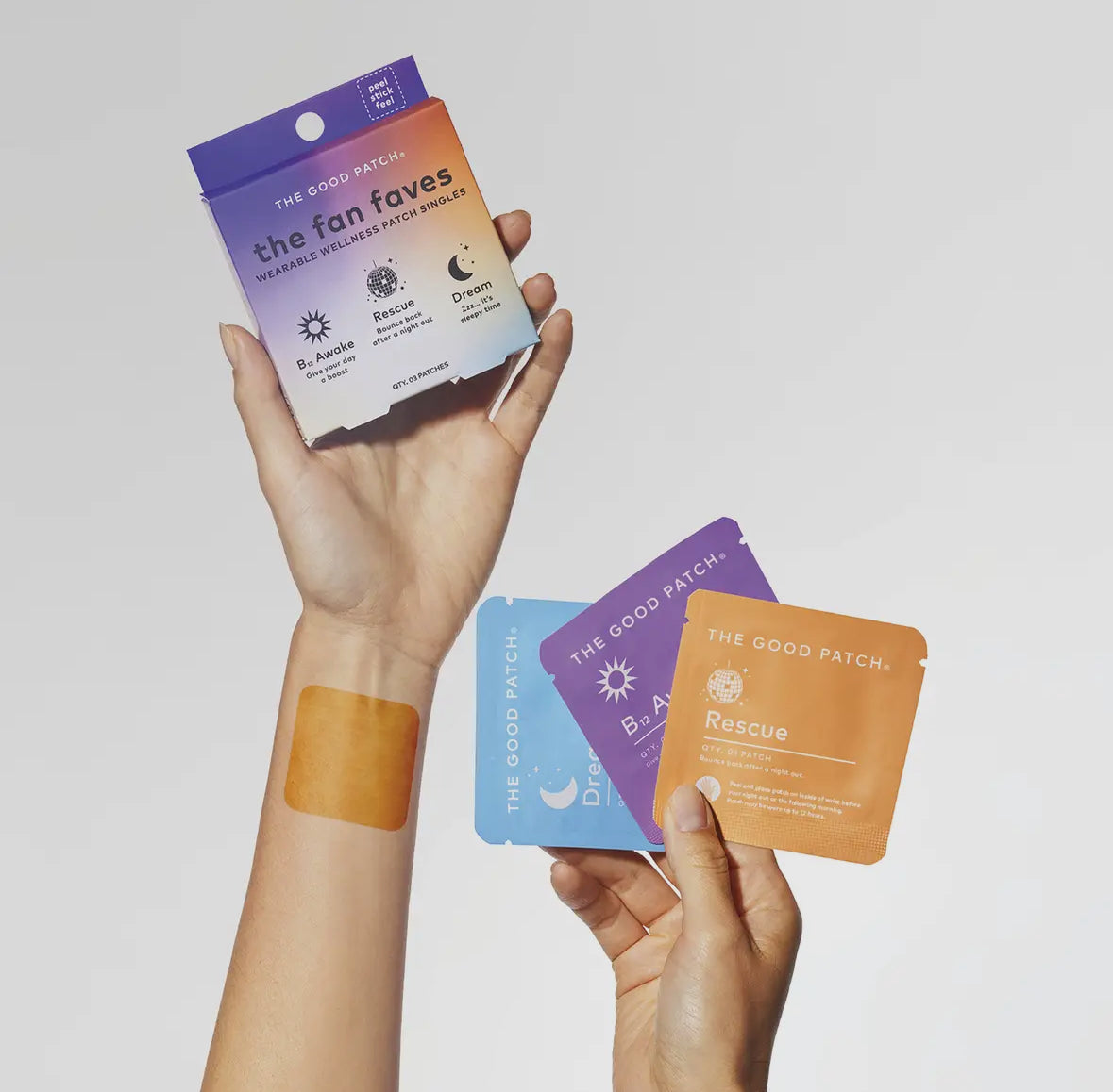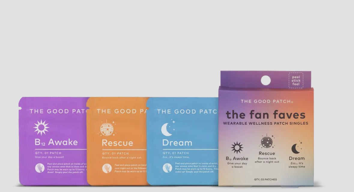 The Fan Faves Set includes 1 B12 Awake patch, 1 Dream patch, and 1 Rescue patch, for 3 patches total. This patch sampler trio is the ultimate travel companion or stocking stuffer for the holiday season!