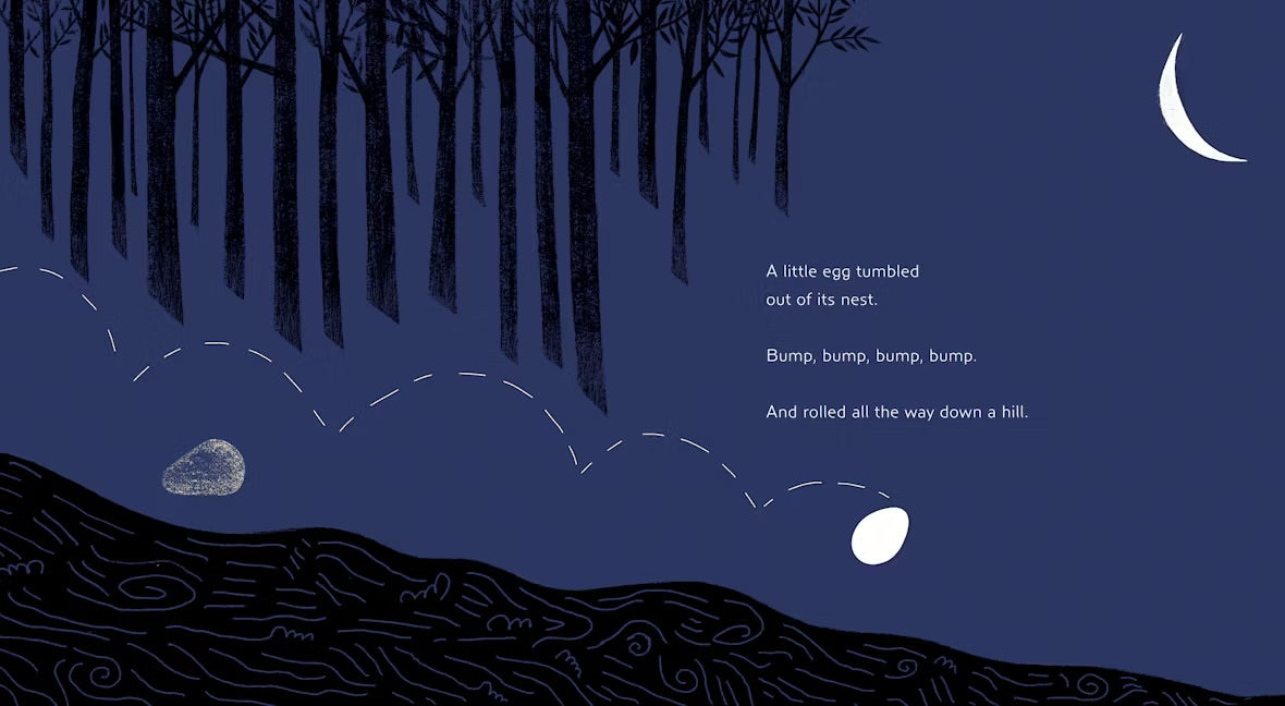 A little egg falls out of its nest and goes in search of its mommy. Can it find her? He asks lots of other animals for help—but eventually Daddy finds the egg and takes it back to the nest to hatch into a beautiful swan.