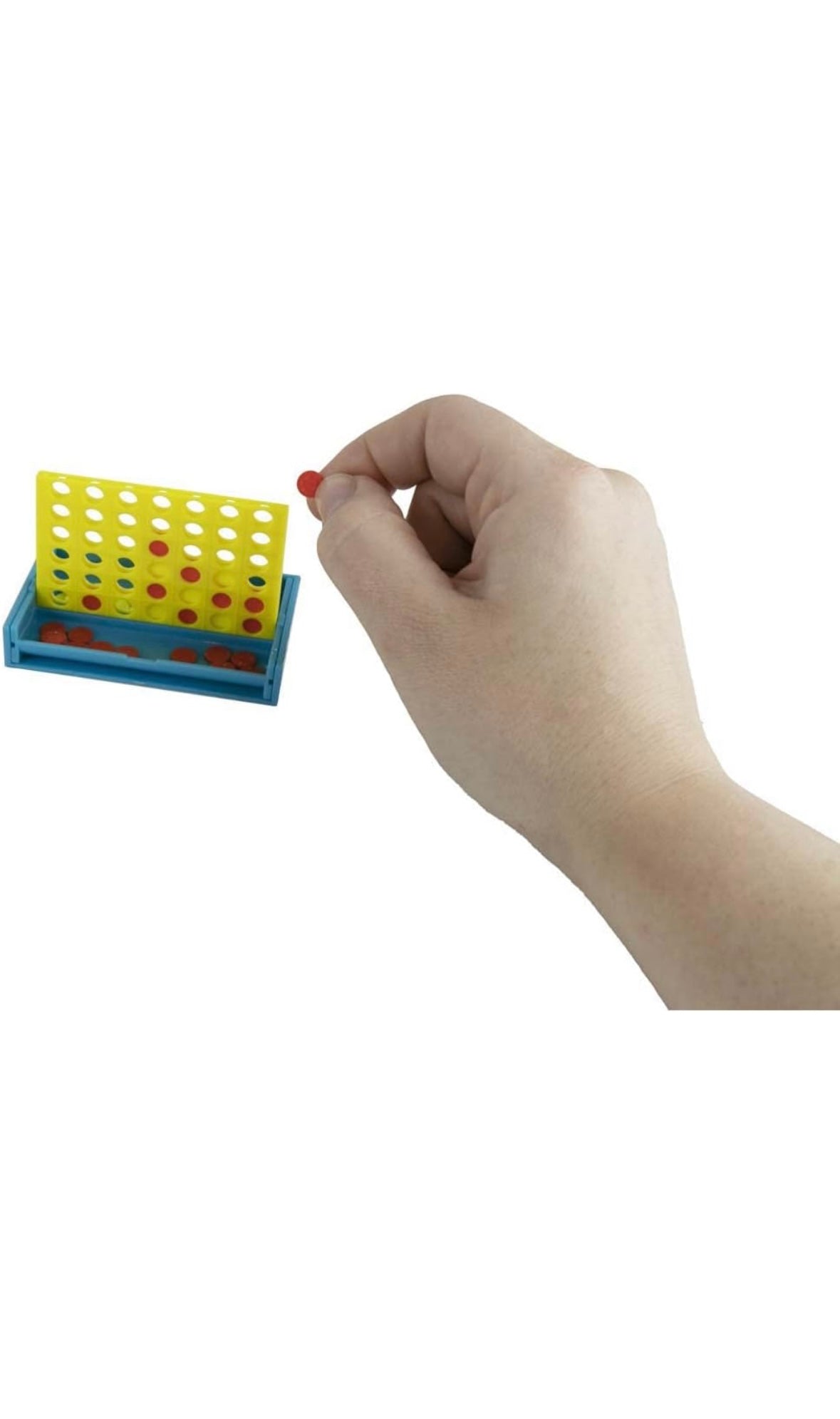 Challenge a friend to rule the grid in the classic game of Connect 4, now available in miniature size.