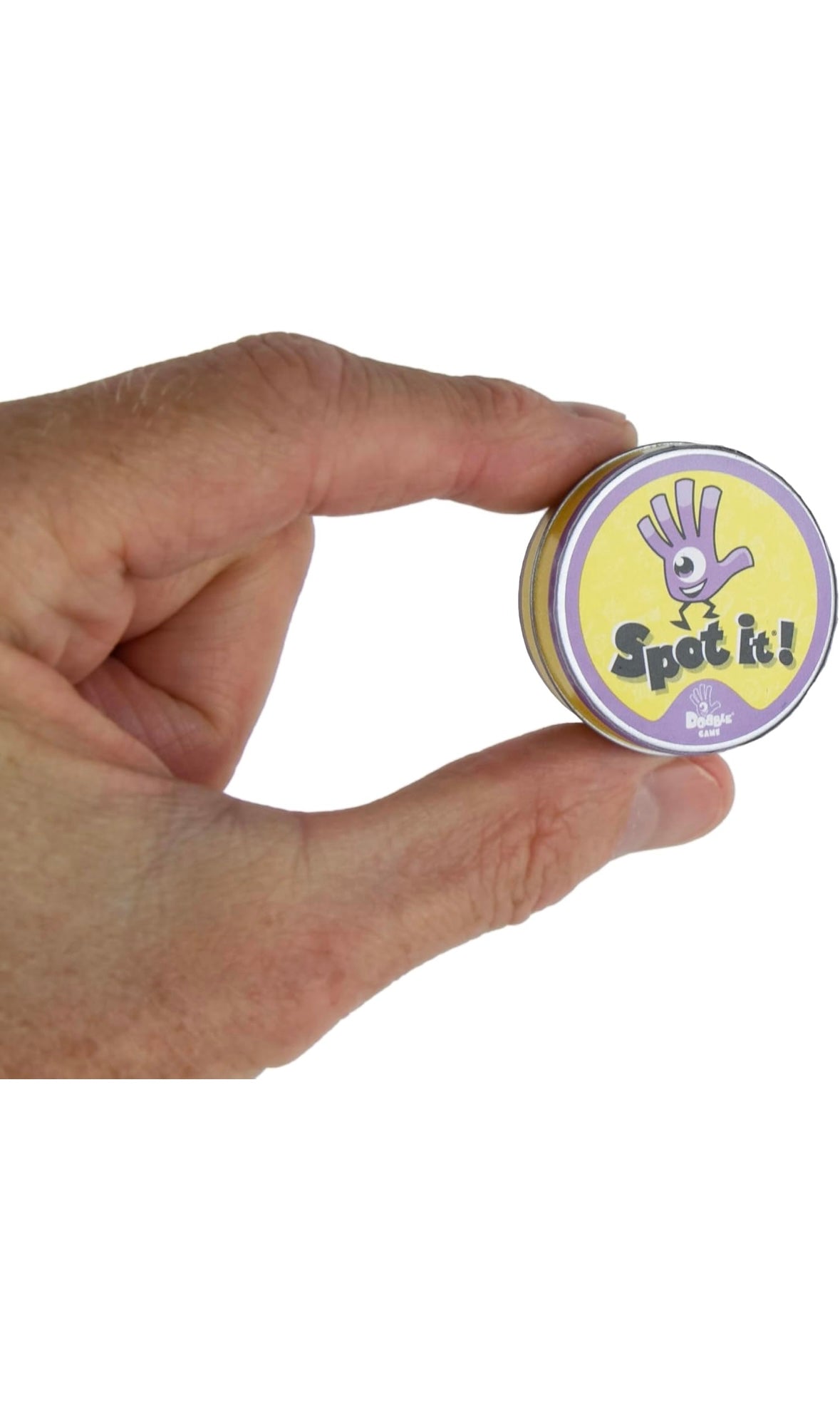 - With its miniature size measuring just 1.5 inches round, this portable version still retains all the fun and excitement of the original Spot It game. Race against friends and family to spot the matching symbols on each card, testing your speed and reflexes in a series of fast-paced rounds.